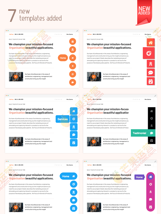 创建无限的导航菜单! 不仅仅是一页导航,也可以使用外部 URL/链接创建多页和/或导航。 从 13 个漂亮的预先设计的模板中进行选择或自定义设计您的菜单。
